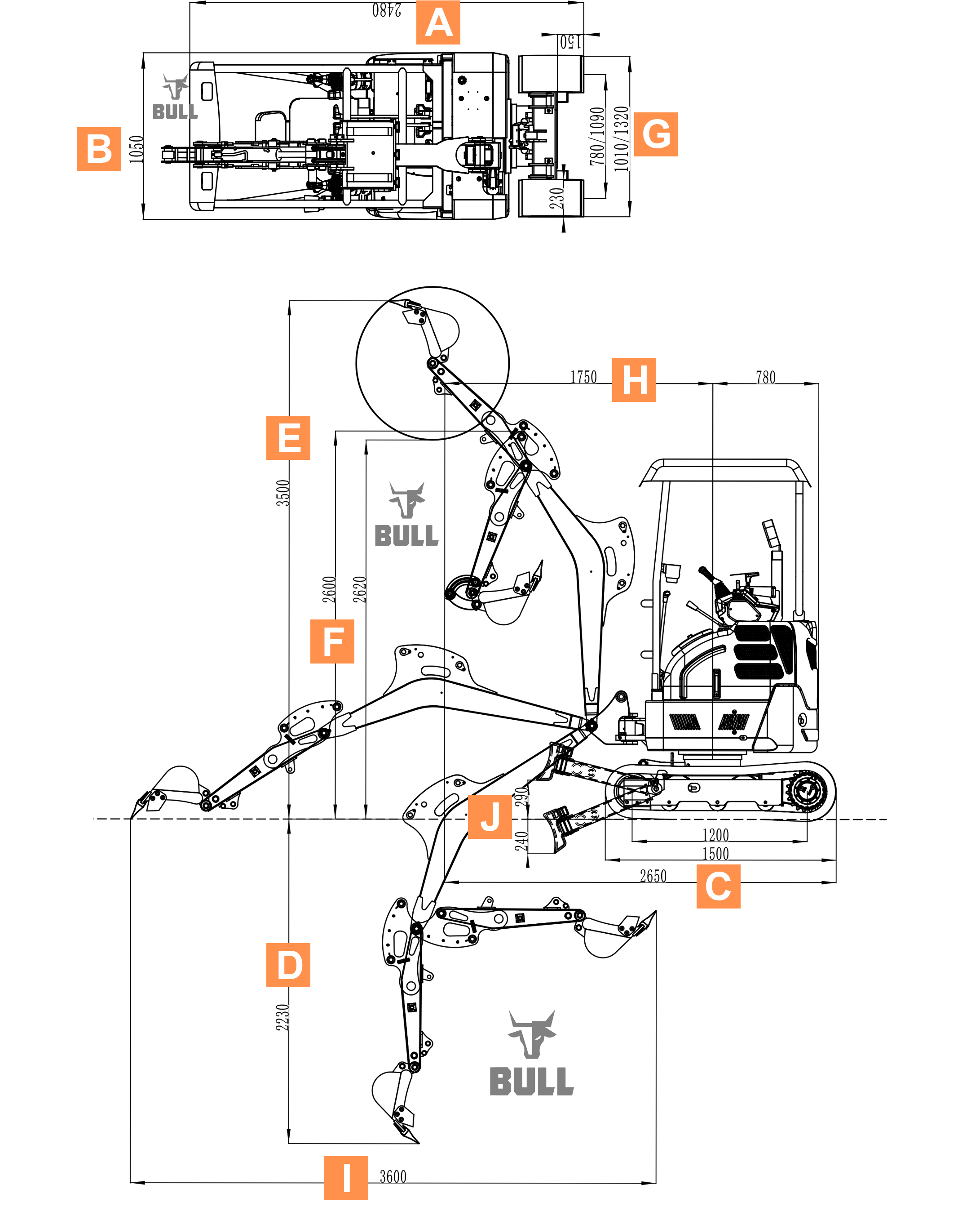 La mini-excavadora BULL desde todos los ángulos
